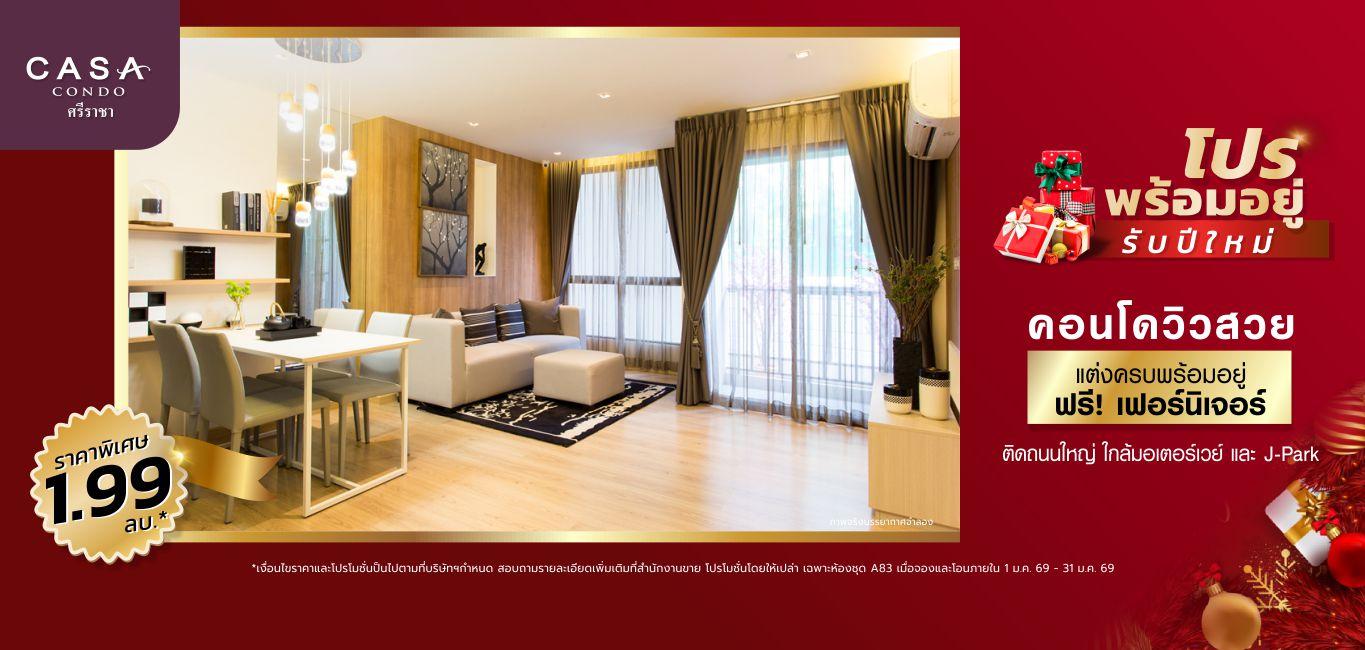 เจ้าของโครงการและผู้มีกรรมสิทธิ์ในที่ดิน : บริษัท คาซ่า วิลล์ (ระยอง2553) จำกัด ทะเบียนเลขที่ 0105553071843 สำนักงานใหญ่เลขที่ 1 อาคารคิวเฮ้าส์ ลุมพินี ชั้น7 ถนนสาทรใต้ แขวงทุ่งมหาเมฆ เขตสาทร กรุงเทพมหานคร 10120 กรรมการผู้จัดการ : นายประวิทย์ โชติวัฒนาพันธุ์ ทุนจดทะเบียน 5,000,000 บาท (ชำระค่าหุ้นเต็มมูลค่าแล้ว) โครงการคาซ่า คอนโด ศรีราชา 1 อาคารชุดพักอาศัยสูง 8 ชั้น จำนวน 1 อาคาร รวม 49 ยูนิต แบ่งเป็น ห้องชุดพักอาศัย 49 ยูนิต และละห้องชุดเพื่อการพาณิชย์ 0 ยูนิต และพื้นที่สีเขียว รวมประมาณ 185.8 ตารางเมตร ที่ตั้งโครงการ ถนนทางหลวงแผ่นดินสายต่อเขตเทศบาลศรีราชาควบคุม-บรรจบทางหลวงหมายเลข 331 (3241) ตำบลสุรศักดิ์ อำเภอศรีราชา จังหวัดชลบุรี ที่ดินโฉนดเลขที่ 203122 เนื้อที่โครงการประมาณ 1-0-49.4 ไร่ ไม่มีภาระผูกพัน ทะเบียนอาคารชุดเลขที่ 6/2559 โอนกรรมสิทธิ์หลังจากผู้ซื้อชำระเงินครบถ้วนตามสัญญา เจ้าของห้องชุดมีหน้าที่ต้องชำระค่าใช้จ่ายและค่าภาษีอากรตามกฎหมายว่าด้วยอาคารชุด อาคารสโมสรและสระว่ายน้ำ และที่ดินที่ตั้งอาคารสโมสรและสระว่ายน้ำเป็นทรัพย์ส่วนกลางร่วมของนิติบุคคลอาคารชุด ถนนในโครงการที่ใช้เข้า-ออกสู่ทางสาธารณประโยชน์เป็นถนนภารจำยอม