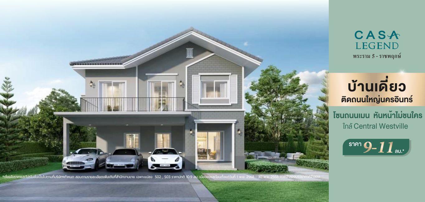 เจ้าของโครงการและผู้มีกรรมสิทธิ์ในที่ดิน : บริษัท คาซ่า วิลล์ จำกัด ทะเบียนเลขที่ 0105536123351 สำนักงานใหญ่ตั้งอยู่ เลขที่ 1 อาคารคิวเฮ้าส์ ลุมพินี ชั้น7 ถนนสาทรใต้ แขวงทุ่งมหาเมฆ เขตสาทร กรุงเทพมหานคร 10120 กรรมการ : นายประวิทย์ โชติวัฒนาพันธุ์ ทุนจดทะเบียน : 3,000,000,000 บาท (ชำระค่าหุ้นเต็มมูลค่าแล้ว) โครงการคาซ่า เลเจ้นท์ พระราม 5 ที่ตั้งโครงการ : ตำบลบางขนุน อำเภอบางกรวย (บางใหญ่) จังหวัดนนทบุรี ใบอนุญาตจัดสรรที่ดินเลขที่ 23/2558 ที่ดินโฉนดเลขที่ 2628 (บางส่วน), 2630, 2636 (บางส่วน), 16696, 27028 (บางส่วน), 13003 (บางส่วน), 2629 (บางส่วน), 10914 (บางส่วน), 39963 (แบ่งแยกเป็นโฉนดที่ดินเลขที่ 39964-39976), 11877 (แบ่งแยกเป็นโฉนดที่ดินเลขที่ 39955-39958), 20151 (แบ่งแยกเป็นโฉนดที่ดินเลขที่ 40141-40311) และ 38378 (แบ่งแยกเป็นโฉนดที่ดินเลขที่ 39977-39990) ที่ดินไม่มีภาระผูกพัน เริ่มก่อสร้างประมาณกรกฏาคม 2557 คาดว่าจะแล้วเสร็จประมาณมิถุนายน 2562 สโมสรและสระว่ายน้ำเป็นบริการสาธารณะ ทั้งนี้ บริษัทสามารถโอนกรรมสิทธิ์ที่ดินพร้อมสิ่งปลูกสร้างให้แก่ผู้ซื้อได้ภายใน 15 วัน หลังจากผู้ซื้อชำระราคาครบถ้วนแล้ว