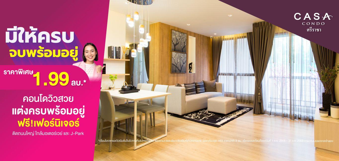 เจ้าของโครงการและผู้มีกรรมสิทธิ์ในที่ดิน : บริษัท คาซ่า วิลล์ (ระยอง2553) จำกัด ทะเบียนเลขที่ 0105553071843 สำนักงานใหญ่เลขที่ 1 อาคารคิวเฮ้าส์ ลุมพินี ชั้น7 ถนนสาทรใต้ แขวงทุ่งมหาเมฆ เขตสาทร กรุงเทพมหานคร 10120 กรรมการผู้จัดการ : นายประวิทย์ โชติวัฒนาพันธุ์ ทุนจดทะเบียน 5,000,000 บาท (ชำระค่าหุ้นเต็มมูลค่าแล้ว) โครงการคาซ่า คอนโด ศรีราชา 1 อาคารชุดพักอาศัยสูง 8 ชั้น จำนวน 1 อาคาร รวม 49 ยูนิต แบ่งเป็น ห้องชุดพักอาศัย 49 ยูนิต และละห้องชุดเพื่อการพาณิชย์ 0 ยูนิต และพื้นที่สีเขียว รวมประมาณ 185.8 ตารางเมตร ที่ตั้งโครงการ ถนนทางหลวงแผ่นดินสายต่อเขตเทศบาลศรีราชาควบคุม-บรรจบทางหลวงหมายเลข 331 (3241) ตำบลสุรศักดิ์ อำเภอศรีราชา จังหวัดชลบุรี ที่ดินโฉนดเลขที่ 203122 เนื้อที่โครงการประมาณ 1-0-49.4 ไร่ ไม่มีภาระผูกพัน ทะเบียนอาคารชุดเลขที่ 6/2559 โอนกรรมสิทธิ์หลังจากผู้ซื้อชำระเงินครบถ้วนตามสัญญา เจ้าของห้องชุดมีหน้าที่ต้องชำระค่าใช้จ่ายและค่าภาษีอากรตามกฎหมายว่าด้วยอาคารชุด อาคารสโมสรและสระว่ายน้ำ และที่ดินที่ตั้งอาคารสโมสรและสระว่ายน้ำเป็นทรัพย์ส่วนกลางร่วมของนิติบุคคลอาคารชุด ถนนในโครงการที่ใช้เข้า-ออกสู่ทางสาธารณประโยชน์เป็นถนนภารจำยอม