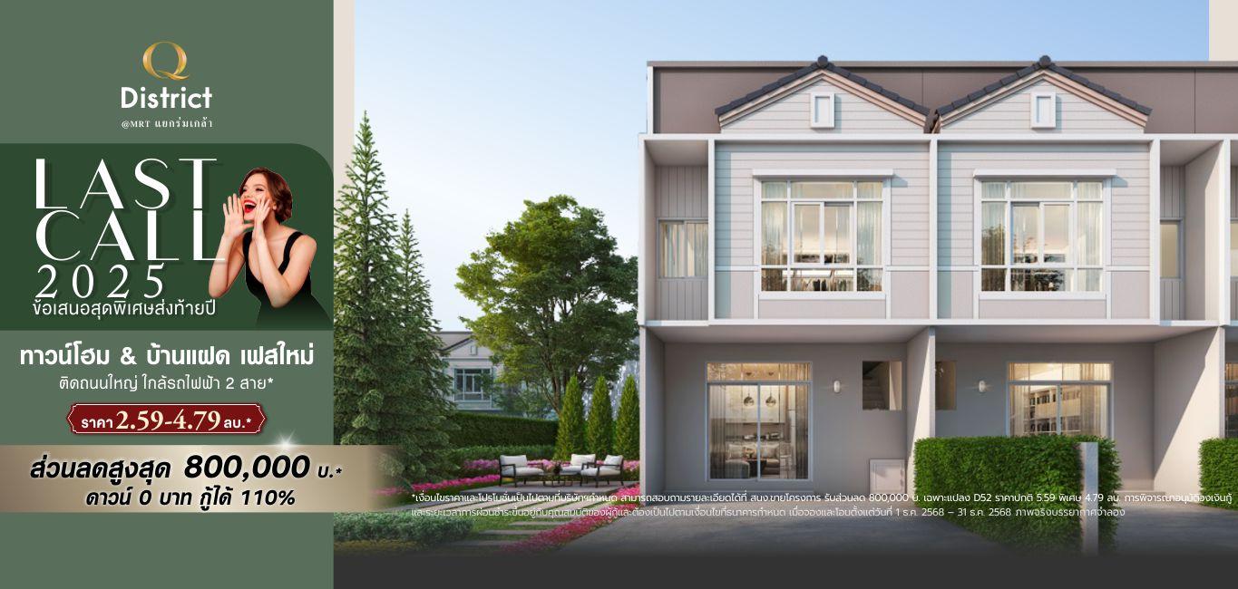 เจ้าของโครงการและผู้มีกรรมสิทธิ์ในที่ดิน : บริษัท กัสโต้ วิลเลจ จำกัด ทะเบียนเลขที่ 0105554046974 สำนักงานใหญ่ตั้งอยู่ เลขที่ 1 อาคารคิวเฮ้าส์ ลุมพินี ชั้น 7 ถนนสาทรใต้ แขวงทุ่งมหาเมฆ เขตสาทร กรุงเทพมหานคร 10120 กรรมการผู้จัดการ : นายอดิศักดิ์ ศรีสุข และ นายสมมาตร พรหมคุณากร ทุนจดทะเบียน : 500,000,000 บ. (ชำระค่าหุ้นเต็มมูลค่าแล้ว) โครงการ Q District @MRT แยกร่มเกล้า ที่ตั้งโครงการ : แขวงมีนบุรี เขตมีนบุรี จังหวัดกรุงเทพมหานคร ใบอนุญาตจัดสรรที่ดินเลขที่ 110/2566 โฉนดเลขที่ 2283, 38169, 39271, 39296 (บางส่วน), 80532, 80533, 102372, 102373 (บางส่วน), 102374-102389, 104259-104266, 104641 (บางส่วน), 117519-117523 (รวม 38 โฉนด) เนื้อที่นำมาจัดสรร 71-2-57.1 ไร่ ทรัพย์สินส่วนสาธารณูปโภคและบริการสาธารณะ จำนวน 8 แปลง คิดเป็นพื้นที่โดยประมาณ 27-0-28.79ไร่ ที่ดินไม่มีภาระผูกพัน เริ่มก่อสร้าง 25 สิงหาคม 2566 คาดว่าจะแล้วเสร็จ 25 สิงหาคม 2570 สโมสรและสระว่ายน้ำเป็นบริการสาธารณะ ทั้งนี้ บริษัทสามารถโอนกรรมสิทธิ์ที่ดินพร้อมสิ่งปลูกสร้างให้แก่ผู้ซื้อได้ภายใน 30 วัน หลังจากผู้ซื้อชำระราคาครบถ้วนแล้ว