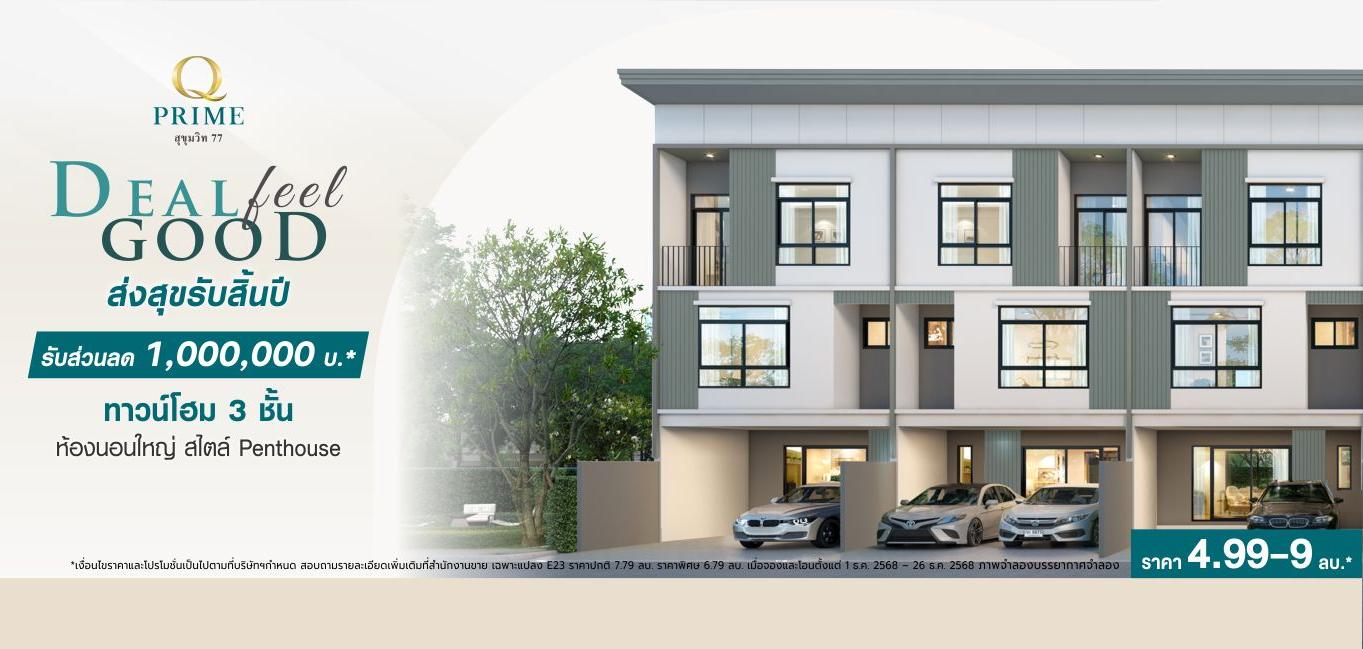 เจ้าของโครงการและผู้มีกรรมสิทธิ์ในที่ดิน : บริษัท ควอลิตี้เฮ้าส์ จำกัด (มหาชน) ทะเบียนเลขที่ 0107536000579 สำนักงานใหญ่ตั้งอยู่ เลขที่ 1 อาคารคิวเฮ้าส์ ลุมพินี ชั้น 7 ถนนสาทรใต้ แขวงทุ่งมหาเมฆ เขตสาทร กรุงเทพมหานคร 10120 กรรมการผู้จัดการ : นายประวิทย์ โชติวัฒนาพันธุ์ ทุนจดทะเบียน : 10,714,426,091 บาท (ทุนชำระแล้ว : 10,714,381,645 บาท) โครงการ Q PRIME สุขุมวิท 77 ที่ตั้งโครงการ : แขวงอ่อนนุช เขตสวนหลวง กรุงเทพมหานคร ใบอนุญาตจัดสรรที่ดินเลขที่ 136/2562 โฉนดเลขที่ 1293,21132 (บางส่วน) เนื้อที่นำมาจัดสรร 25-0-46.5 ไร่ ทรัพย์สินส่วนสาธารณูปโภคและบริการสาธารณะ จำนวน 7 แปลง คิดเป็นพื้นที่โดยประมาณ 10-1-71.7ไร่ ที่ดินไม่มีภาระผูกพัน เริ่มก่อสร้าง พฤศจิกายน 2562 คาดว่าจะแล้วเสร็จ พฤศจิกายน 2567 สโมสรและสระว่ายน้ำเป็นบริการสาธารณะ ทั้งนี้ บริษัทสามารถโอนกรรมสิทธิ์ที่ดินพร้อมสิ่งปลูกสร้างให้แก่ผู้ซื้อได้ภายใน 30 วัน หลังจากผู้ซื้อชำระราคาครบถ้วนแล้ว