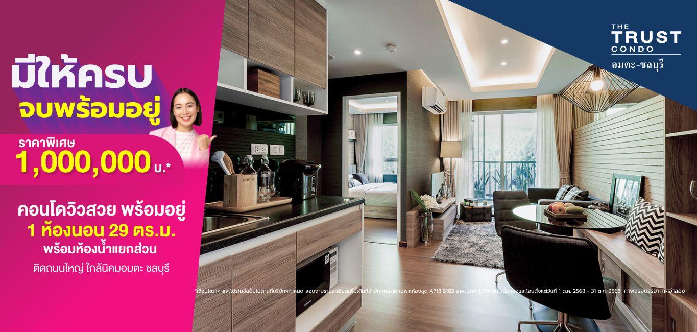 เจ้าของโครงการและผู้มีกรรมสิทธิ์ในที่ดิน : บริษัท คาซ่า วิลล์ (ชลบุรี 2554) จำกัด ทะเบียนเลขที่ 0105554054659 สำนักงานใหญ่เลขที่ 1 อาคารคิวเฮ้าส์ ลุมพินี ชั้น 7 ถนนสาทรใต้ แขวงทุ่งมหาเมฆ เขตสาทร กรุงเทพมหานคร 10120 กรรมการผู้จัดการ : นายประวิทย์ โชติวัฒนาพันธุ์ ทุนจดทะเบียน 3,005,000,000 บาท (ชำระค่าหุ้นเต็มมูลค่าแล้ว) โครงการ เดอะทรัสต์ คอนโด อมตะ-ชลบุรี อาคารชุดพักอาศัยสูง 8 ชั้น จำนวน 3 อาคาร มีห้องชุดพักอาศัยทั้งหมด 518 ยูนิต และอาคารต้อนรับขนาดความสูง 1 ชั้น จำนวน 1 อาคาร และพื้นที่สีเขียว รวมประมาณ 1,689.18 ตารางเมตร ที่ตั้งโครงการ ถนนทางหลวงแผ่นดินสายอ้อมเมืองชลบุรี ตำบลหนองไม้แดง อำเภอเมือง จังหวัดชลบุรี ที่ดินโฉนดเลขที่ 176572 และ 176573 เนื้อที่โครงการ 5-0-15.3 ไร่ ไม่มีภาระผูกพัน ทะเบียนอาคารชุดเลขที่ 24/2558 ได้รับความเห็นชอบตามกฎหมายว่าด้วยการส่งเสริมและรักษาคุณภาพสิ่งแวดล้อม ตามหนังสือเลขที่ ทส.1009.5/5696 ลงวันที่ 26 พฤษภาคม 2557 โอนกรรมสิทธิ์หลังจากผู้ซื้อชำระเงินครบถ้วนตามสัญญา เจ้าของห้องชุดมีหน้าที่ต้องชำระค่าใช้จ่ายและค่าภาษีอากรตามกฎหมายว่าด้วยอาคารชุด