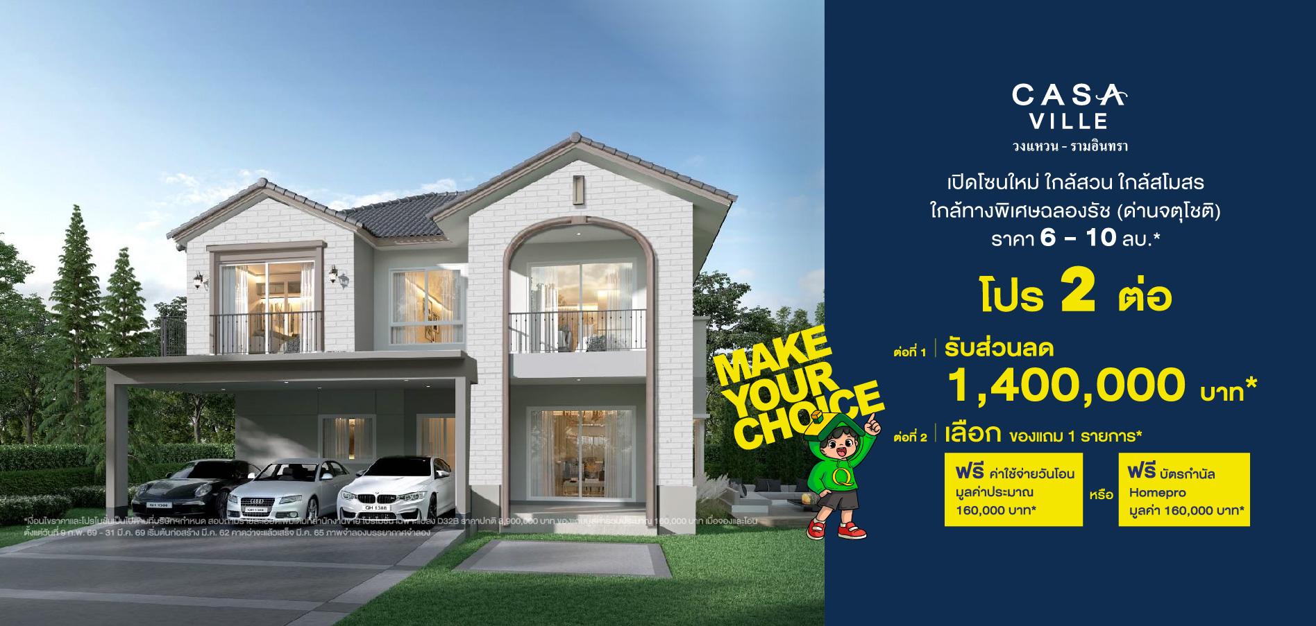 เจ้าของโครงการและผู้มีกรรมสิทธิ์ในที่ดิน : บริษัท คาซ่า วิลล์ จำกัด ทะเบียนเลขที่ 0105536123351 สำนักงานใหญ่ตั้งอยู่เลขที่ 1 อาคารคิวเฮ้าส์ ลุมพินี ชั้น 7 ถนนสาทรใต้ แขวงทุ่งมหาเมฆ เขตสาทร กรุงเทพมหานคร 10120 กรรมการผู้จัดการ : นายประวิทย์ โชติวัฒนาพันธุ์ ทุนจดทะเบียน : 3,000,000,000 บาท (ชำระค่าหุ้นเต็มมูลค่าแล้ว) โครงการ คาซ่าวิลล์ วงแหวน-รามอินทรา ที่ตั้งโครงการ แขวงออเงิน เขตสายไหม จังหวัด กรุงเทพมหานคร ใบอนุญาตจัดสรรที่ดินเลขที่ 70/2562 ที่ดินโฉนดเลขที่ 1141, 1142, 1143, 1144, 12265, 35337, 35338, 35339, 35340, 35341, 36050 และ36584 เนื้อที่โครงการประมาณ 89-3-34.7 ไร่ ทรัพย์สินส่วนสาธารณูปโภคและบริการสาธารณะ จำนวน 9 แปลง 29-2-64.7 ไร่ ที่ดินไม่มีภาระผูกพัน เริ่มก่อสร้าง มิถุนายน 2562 คาดว่าจะแล้วเสร็จ มิถุนายน 2567 สโมสรและสระว่ายน้ำเป็นบริการสาธารณะ ทั้งนี้ บริษัทสามารถโอนกรรมสิทธิ์ที่ดินพร้อมสิ่งปลูกสร้างให้แก่ผู้ซื้อได้ภายใน 30 วัน หลังจากผู้ซื้อชำระราคาครบถ้วนแล้ว