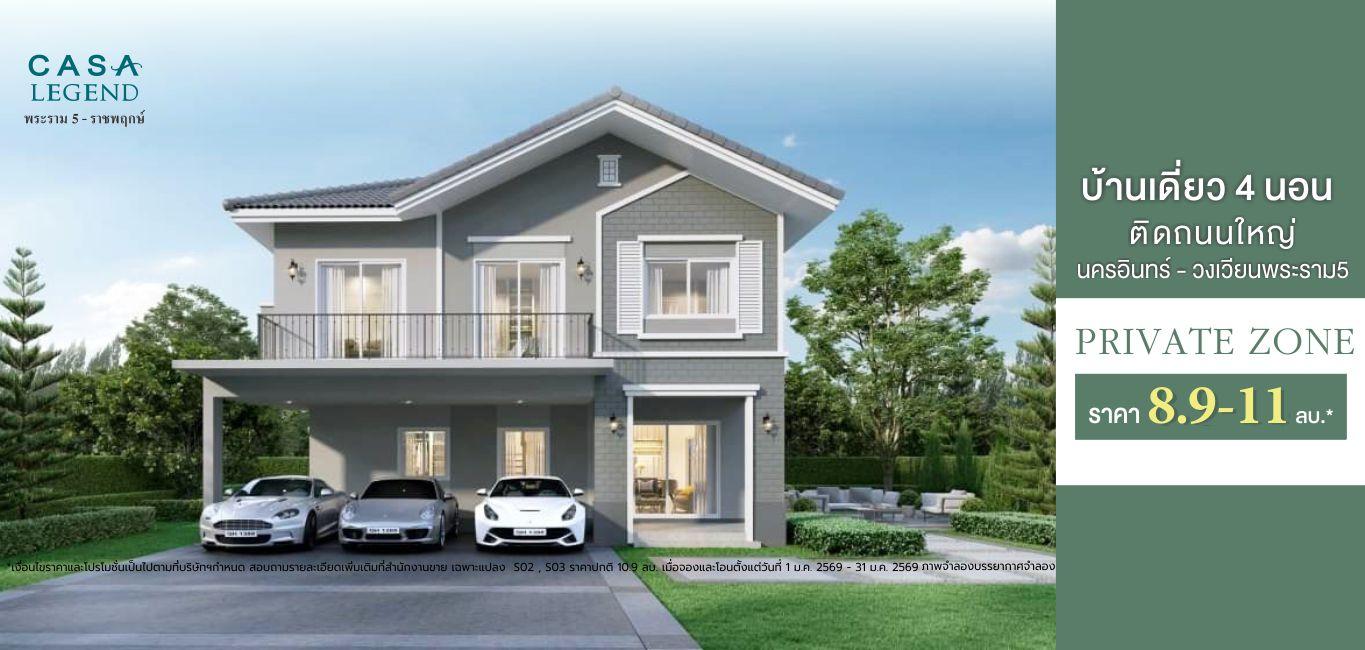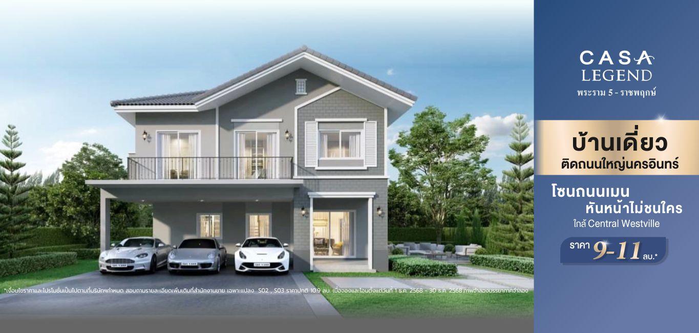 เจ้าของโครงการและผู้มีกรรมสิทธิ์ในที่ดิน : บริษัท คาซ่า วิลล์ จำกัด ทะเบียนเลขที่ 0105536123351 สำนักงานใหญ่ตั้งอยู่ เลขที่ 1 อาคารคิวเฮ้าส์ ลุมพินี ชั้น7 ถนนสาทรใต้ แขวงทุ่งมหาเมฆ เขตสาทร กรุงเทพมหานคร 10120 กรรมการ : นายประวิทย์ โชติวัฒนาพันธุ์ ทุนจดทะเบียน : 3,000,000,000 บาท (ชำระค่าหุ้นเต็มมูลค่าแล้ว) โครงการคาซ่า เลเจ้นท์ พระราม 5 ที่ตั้งโครงการ : ตำบลบางขนุน อำเภอบางกรวย (บางใหญ่) จังหวัดนนทบุรี ใบอนุญาตจัดสรรที่ดินเลขที่ 23/2558 ที่ดินโฉนดเลขที่ 2628 (บางส่วน), 2630, 2636 (บางส่วน), 16696, 27028 (บางส่วน), 13003 (บางส่วน), 2629 (บางส่วน), 10914 (บางส่วน), 39963 (แบ่งแยกเป็นโฉนดที่ดินเลขที่ 39964-39976), 11877 (แบ่งแยกเป็นโฉนดที่ดินเลขที่ 39955-39958), 20151 (แบ่งแยกเป็นโฉนดที่ดินเลขที่ 40141-40311) และ 38378 (แบ่งแยกเป็นโฉนดที่ดินเลขที่ 39977-39990) ที่ดินไม่มีภาระผูกพัน เริ่มก่อสร้างประมาณกรกฏาคม 2557 คาดว่าจะแล้วเสร็จประมาณมิถุนายน 2562 สโมสรและสระว่ายน้ำเป็นบริการสาธารณะ ทั้งนี้ บริษัทสามารถโอนกรรมสิทธิ์ที่ดินพร้อมสิ่งปลูกสร้างให้แก่ผู้ซื้อได้ภายใน 15 วัน หลังจากผู้ซื้อชำระราคาครบถ้วนแล้ว
