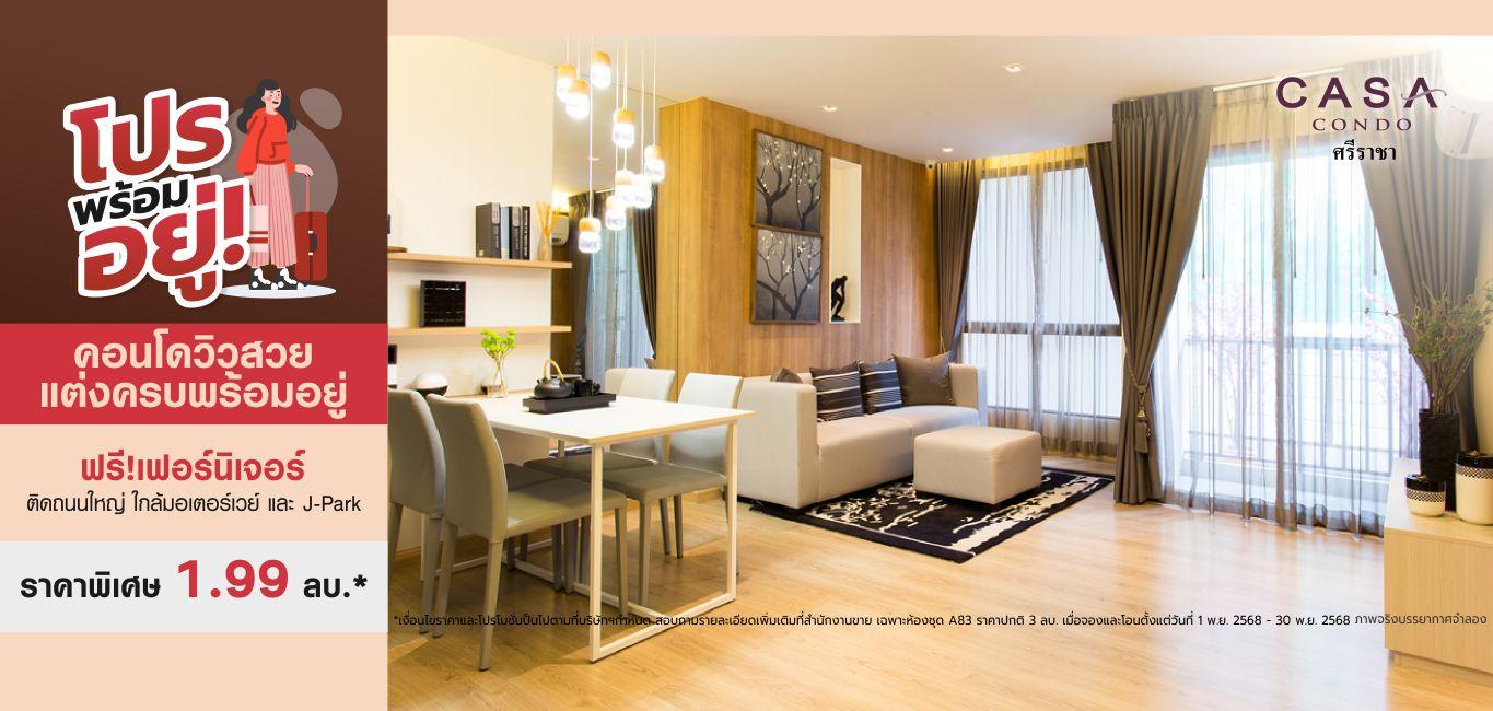 เจ้าของโครงการและผู้มีกรรมสิทธิ์ในที่ดิน : บริษัท คาซ่า วิลล์ (ระยอง2553) จำกัด ทะเบียนเลขที่ 0105553071843 สำนักงานใหญ่เลขที่ 1 อาคารคิวเฮ้าส์ ลุมพินี ชั้น7 ถนนสาทรใต้ แขวงทุ่งมหาเมฆ เขตสาทร กรุงเทพมหานคร 10120 กรรมการผู้จัดการ : นายประวิทย์ โชติวัฒนาพันธุ์ ทุนจดทะเบียน 5,000,000 บาท (ชำระค่าหุ้นเต็มมูลค่าแล้ว) โครงการคาซ่า คอนโด ศรีราชา 1 อาคารชุดพักอาศัยสูง 8 ชั้น จำนวน 1 อาคาร รวม 49 ยูนิต แบ่งเป็น ห้องชุดพักอาศัย 49 ยูนิต และละห้องชุดเพื่อการพาณิชย์ 0 ยูนิต และพื้นที่สีเขียว รวมประมาณ 185.8 ตารางเมตร ที่ตั้งโครงการ ถนนทางหลวงแผ่นดินสายต่อเขตเทศบาลศรีราชาควบคุม-บรรจบทางหลวงหมายเลข 331 (3241) ตำบลสุรศักดิ์ อำเภอศรีราชา จังหวัดชลบุรี ที่ดินโฉนดเลขที่ 203122 เนื้อที่โครงการประมาณ 1-0-49.4 ไร่ ไม่มีภาระผูกพัน ทะเบียนอาคารชุดเลขที่ 6/2559 โอนกรรมสิทธิ์หลังจากผู้ซื้อชำระเงินครบถ้วนตามสัญญา เจ้าของห้องชุดมีหน้าที่ต้องชำระค่าใช้จ่ายและค่าภาษีอากรตามกฎหมายว่าด้วยอาคารชุด อาคารสโมสรและสระว่ายน้ำ และที่ดินที่ตั้งอาคารสโมสรและสระว่ายน้ำเป็นทรัพย์ส่วนกลางร่วมของนิติบุคคลอาคารชุด ถนนในโครงการที่ใช้เข้า-ออกสู่ทางสาธารณประโยชน์เป็นถนนภารจำยอม