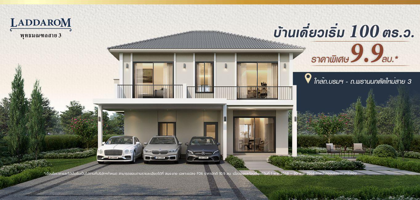 ห้องแม่บ้านLADDAROM 3 โครงการใหม่ โซนปิ่นเกล้า–พุทธมณฑล บ้านเดี่ยวที่ดินเริ่มต้น 100 ตร.ว.*
