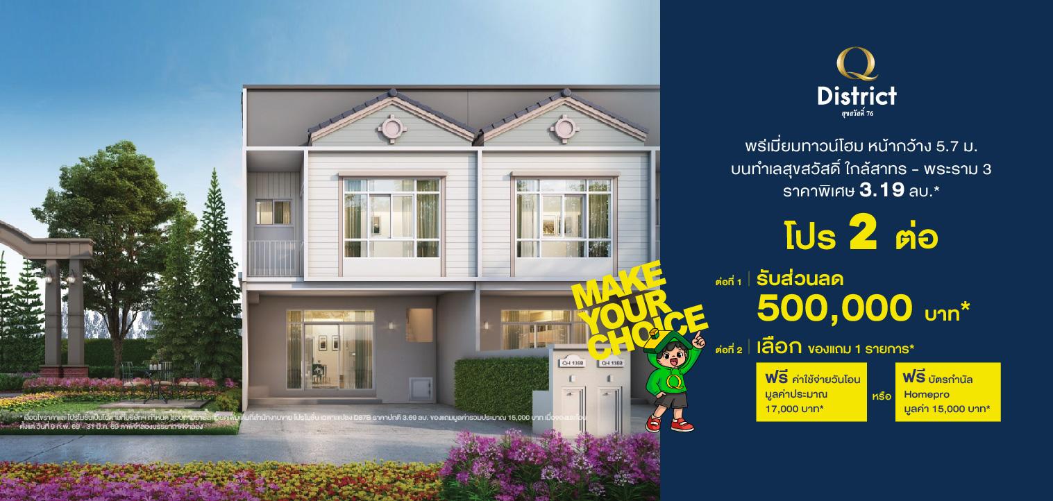 บ้านเดี่ยว ทาวน์โฮม บ้านแฝด พร้อมอยู่ สุขสวัสดิ์ 76 ประชาอุทิศ คิวดิสทริค สุขสวัสดิ์76